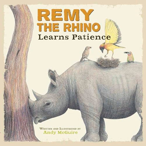 Andy McGuire’s enchanting art and rhymes share the story of Remy, a Rhino so impatient, it takes getting lodged in a tree for him to finally relax. This hilarious story shows children ages 1 to 5 how to get unstuck from impatience and enjoy life and the people around them.
