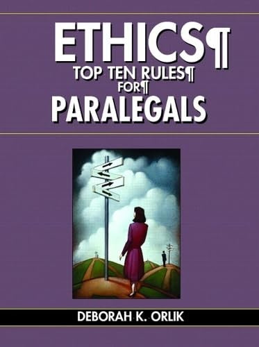 Appropriate for courses in ethics for paralegals, legal assistants, or legal secretaries at the undergraduate level. Also appropriate as a supplement in an Introduction to Law course or an in-house training program. Top Ten Rules for Paralegals presents a straightforward upbeat approach to developing an understanding of professional responsibility in the field of law. Common everyday ethical issues in the real world of law are discussed in a conversational “plan English” style designed to make concepts more accessible and interesting for the student. Specifically designed for today's paralegal students, Top Ten Rules was written by a leading authority in field of paralegal ethics, Deborah Orlik. It is a distillation of over 20 years of legal study and practical use of the rules of professional responsibility as a paralegal. This is the author's sixth book on the subject, however, this book takes a different, less dry, approach to the subject. The author warns the students to be prepared to use their own morality to test their threshold of right and wrong while discussing the scenarios presented in the book. The object is to place the readers in a realistic workplace context involving an ethical issue and ask them to use their newly gained knowledge of the law and of their own morality to work through the problem. This course of study will give them an opportunity to explore their feelings and opinions and get them ready to deal with issues on the job. No one book can provide the answers to all ethical issues. But this text will give the student a starting place. By the end of this course of study they should be able to: 1) identify an ethical issue; 2) put it into a general category - one of the Top Ten rules; and 3) know where to start researching the answer to any ethical issue.| SKU | Unavailable |