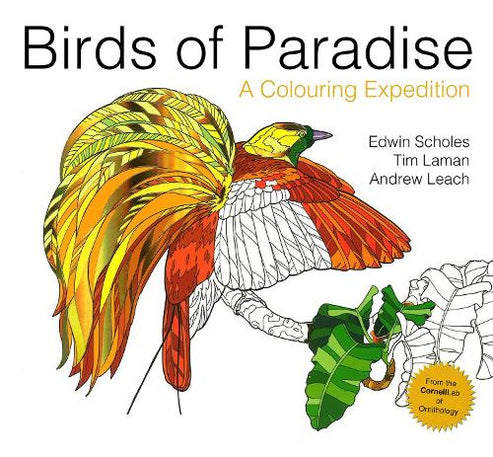 What could be more delightful than to colour in the amazing plumage of true-to-life birds of paradise? This beautiful book contains illustrations of 39 different birds of paradise. What could be more delightful than to colour in the amazing plumage of true-to-life birds of paradise? This beautiful book contains illustrations of 39 different birds of paradise, drawn by Andrew Leach, from the work of Dr Edwin Scholes and photojournalist Tim Laman from a Cornell Lab of Ornithology expedition. The photographs are also included as a wonderful bonus and to show the dazzling colours of these remarkable birds. There have been more than 12 million views of the Cornell Lab of Ornithology’s introductory video to the birds of paradise project on YouTube alone.Dr. Edwin Scholes is a scientist, author, and explorer at the Cornell Lab. He has studied the birds of paradise for more than a decade, is a leading authority on their behavior and evolution, and heads up the Birds-of-Paradise Project at the Cornell Lab.