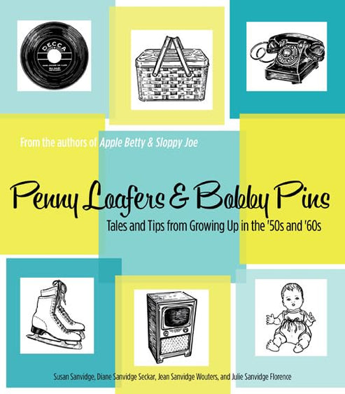 In the fifties, sleek Mixmasters were replacing rusty eggbeaters, and new pressure-cookers blew their tops in kitchens all over town. There were kids everywhere, and new ranch-style houses filled vacant lots. . . . Turquoise Studebakers and dusty-rose Chevy BelAirs with flamboyant fins and lots of chrome replaced dark pre-war cars. Cameras took color snapshots instead of black-and-white. We wore red canvas tennis shoes and lemon yellow shorts, and bright blue popsicles melted down our chins. from the IntroductionIn Penny Loafers & Bobby Pins, the four Sanvidge sisters, whose birthdates span the Baby Boomer period, present a lively chronicle of growing up in the 1950s and 1960s in a small midwestern town. Each sister writes about the facets of her childhood she remembers best, and their lighthearted stories are illustrated with period photos. Sprinkled with mentions of pedal pushers, home permanents, and two-tone cars; early TV shows and the first rock and roll; hula hoops, Tiny Tears, and Mr. Potato Head (played with a real potato); and memories of their grandparents who lived nearby, Penny Loafers & Bobby Pins also features how-tos for re-creating the fads, foods, crafts, and games the Sanvidge sisters recall in their stories.