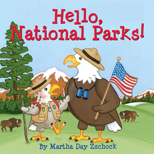 Welcome to the National Park Parent and child eagles visit America's national parks and public lands in children's author-illustrator Martha Day Zschock's latest board book Hello, National Parks Packed with details for the youngest travelers, the book takes little readers from the Statue of Liberty in the east to the Golden Gate in the west, from the Grand Canyon to Cape Cod National Seashore to the Everglades and to Hawaii Volcanoes. Along the way, budding Junior Rangers will begin to develop an appreciation for our country's history, animals, and beauty For ages 2-5. Large Format.| SKU | Non disponible |