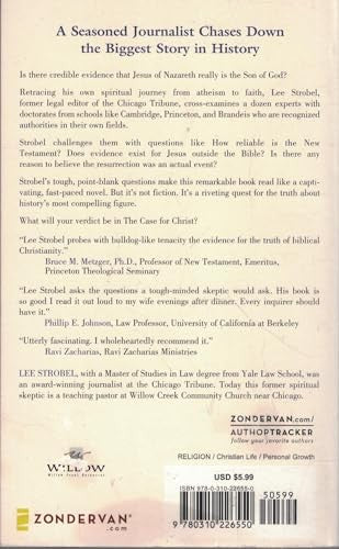 A seasoned journalist chases down the biggest story in history Is there credible evidence that Jesus of Nazareth really is the son of God? Retracing his own spiritual journey from atheism to faith, Lee Strobel, former legal editor of the Chicago Tribune, cross-examines a dozen experts with doctorates from schools like Cambridge, Princeton, and Brandeis who are recognized authorities in their own fields. Strobel challenges them with question like How reliable is the New Testament? Does evidence for Jesus exist outside the Bible? Is there any reason to believe the resurrection was an actual event? What documentation is there concerning the life and teachings of Jesus, and how reliable is it? Does archaeology substantiate the historical accounts? Did Jesus really perform miracles? Did he claim to be God-and if so, did he fit the profile? Strobel's tough, point-blank questions make this Gold Medallion-winning book read like a captivating, fast-paced novel. But it's not fiction. It's a riveting quest for the truth about history's most compelling figure. What will your verdict be in the The Case for Christ?