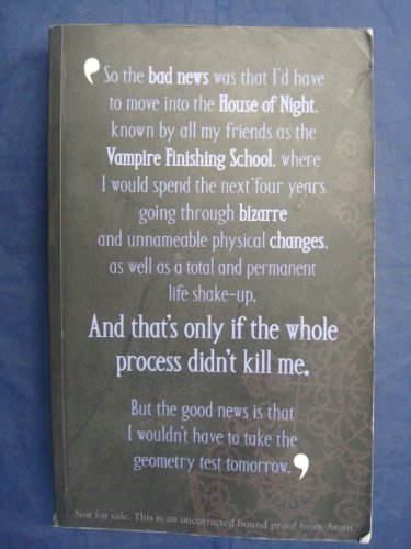 When sixteen-year-old Zoey Redbird gets Marked as a fledgling vampire she must join the House of Night school where she will train to become an adult vampire. That is, if she makes it through the Change. But Zoe is no ordinary fledgling. She has been chosen as special by the Goddess Nyx and discovers her amazing new power to conjure the elements: earth, air, fire, water and spirit. When Zoey discovers that the leader of the Dark Daughters, the school's most elite group, is misusing her Goddess-given gifts, Zoey must look within herself to embrace her destiny - with a little help from her new vampire friends. - Not suitable for younger readers -