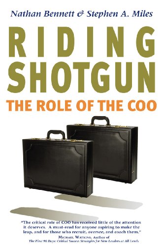 "The job of COO is becoming more important as companies and their boards look internally for succession alternatives. One question they face: Will the organization continue to run as the number 2 becomes the number 1? Riding Shotgun will help answer this and many more questions about the COO role in today's corporate structure." -- John Berisford, Senior Vice President, Human Resources * The Pepsi Bottling Group *
