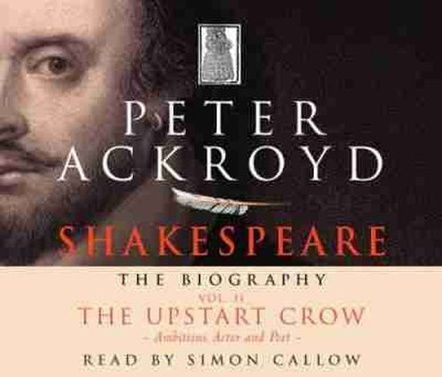 VOL. 2: THE UPSTART CROW. Ambitious Actor and Poet. (c. 1590 - Midsummer Night's Dream) Peter Ackroyd's insightful new biography positions Shakespeare in the close context of his world. In this way, Ackroyd not only richly conjures up the texture of Shakespeare's life, but also imparts an amazing amount of vivid, interesting material about place, period and background. Walk with Ackroyd through sixteenth century London and Stratford as he uncovers the intimate circumstances of Shakespeare's life. Discover the theatrical world in which Shakespeare had his being - not just Shakespeare the actor but the other actors, playwrights, and managers that surrounded him. And journey to Stratford to meet Shakespeare the family man, whose private life had such an impact on his work that the strongest bond in his plays is always between father and daughter.